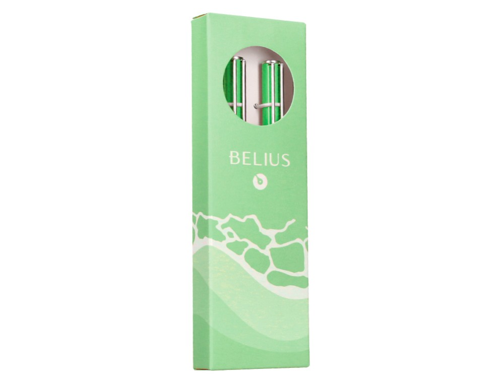 Juego boligrafo y roller belius endless summer aluminio color verde y plateado tinta azul caja de diseño