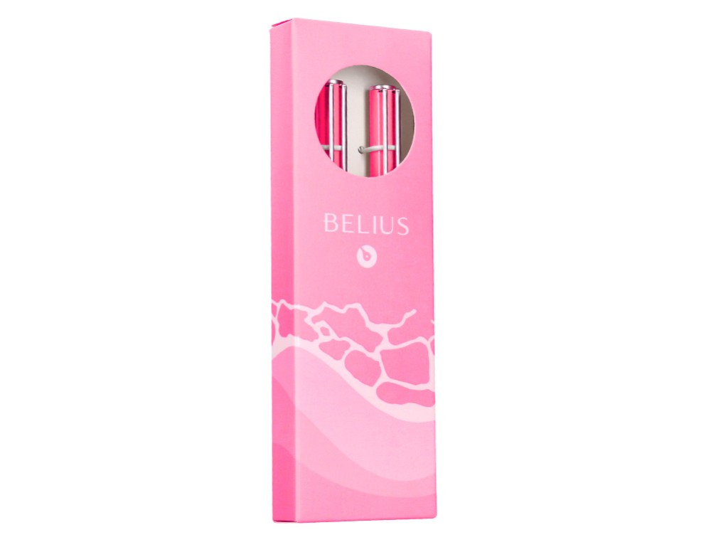 Juego boligrafo y roller belius endless summer aluminio color rosa y plateado tinta azul caja de diseño