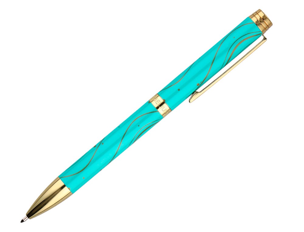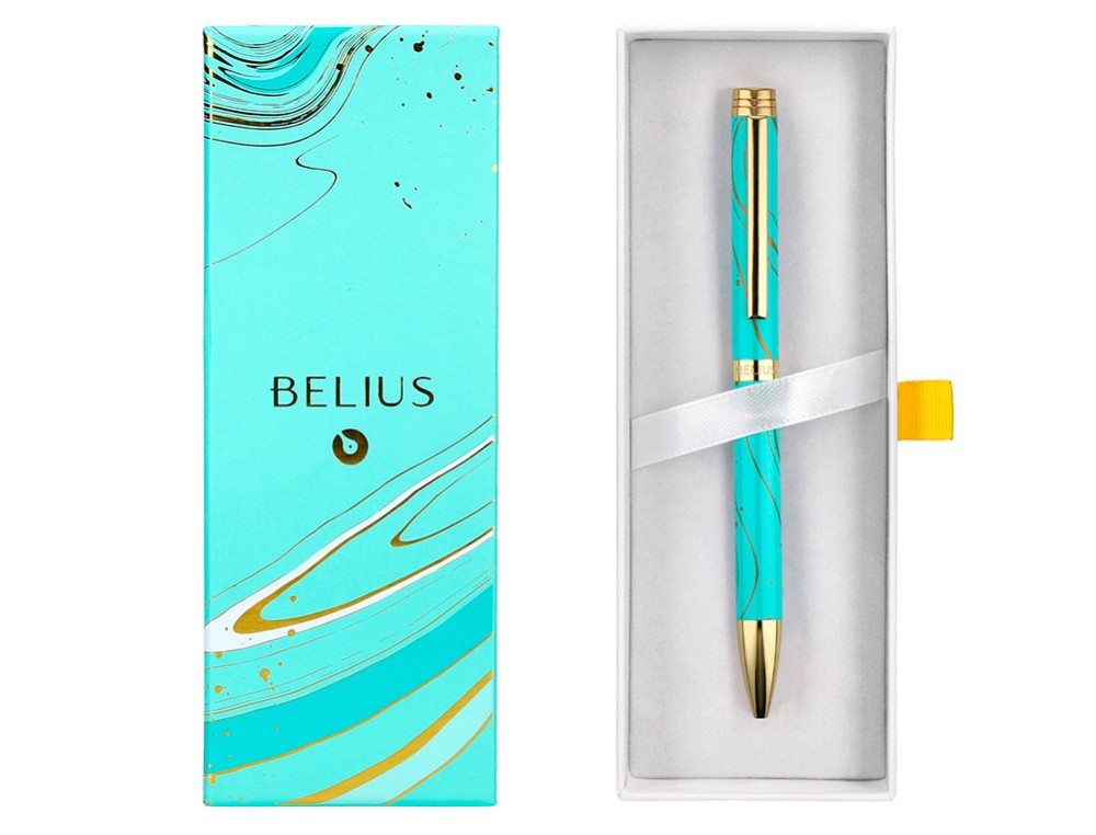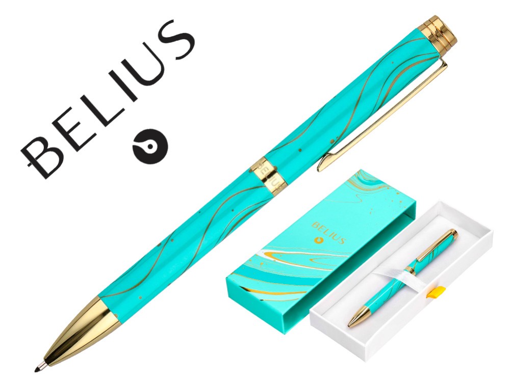 Boligrafo belius aqua aluminio color turquesa y dorado tinta azul caja de diseño