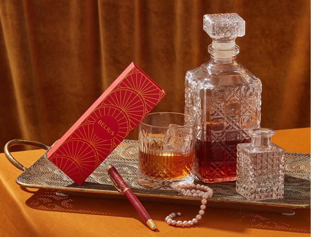 Boligrafo y estuche belius soiree color art deco granate y dorado tinta azul caja de diseño