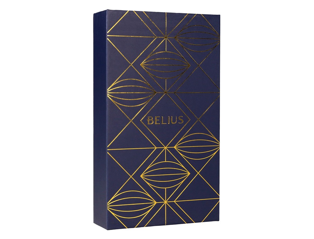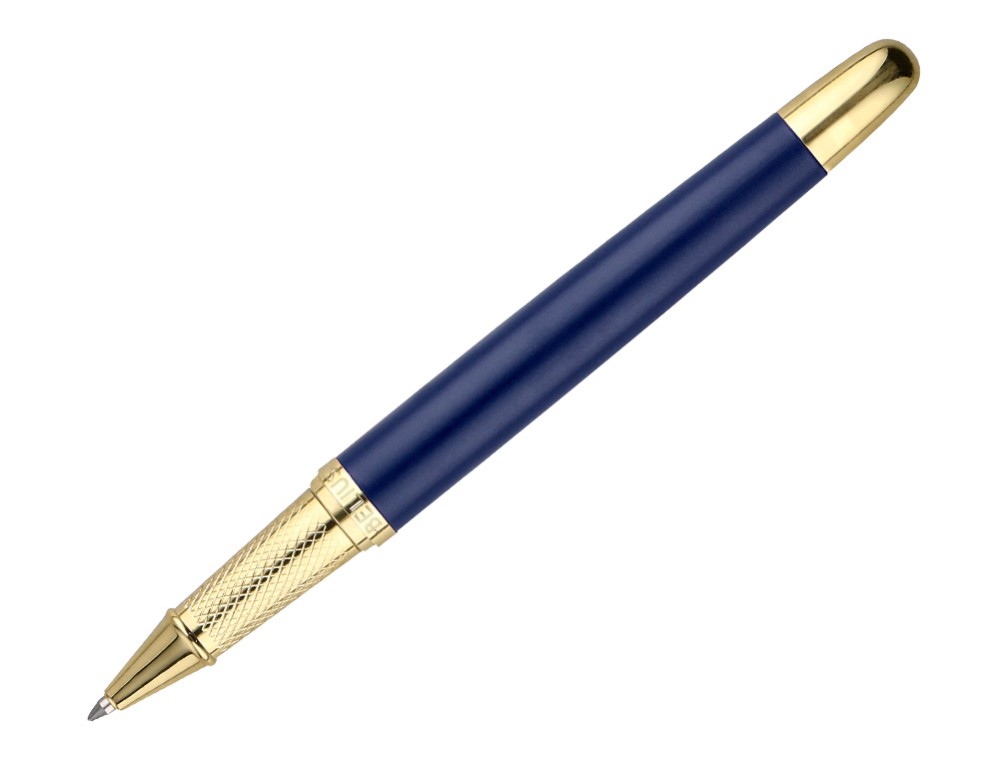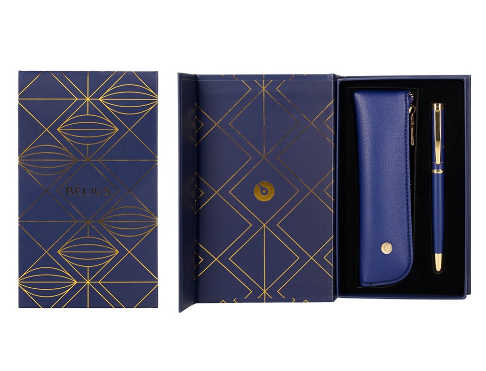 Boligrafo y estuche belius soiree color azul marino y dorado tinta azul caja de diseño