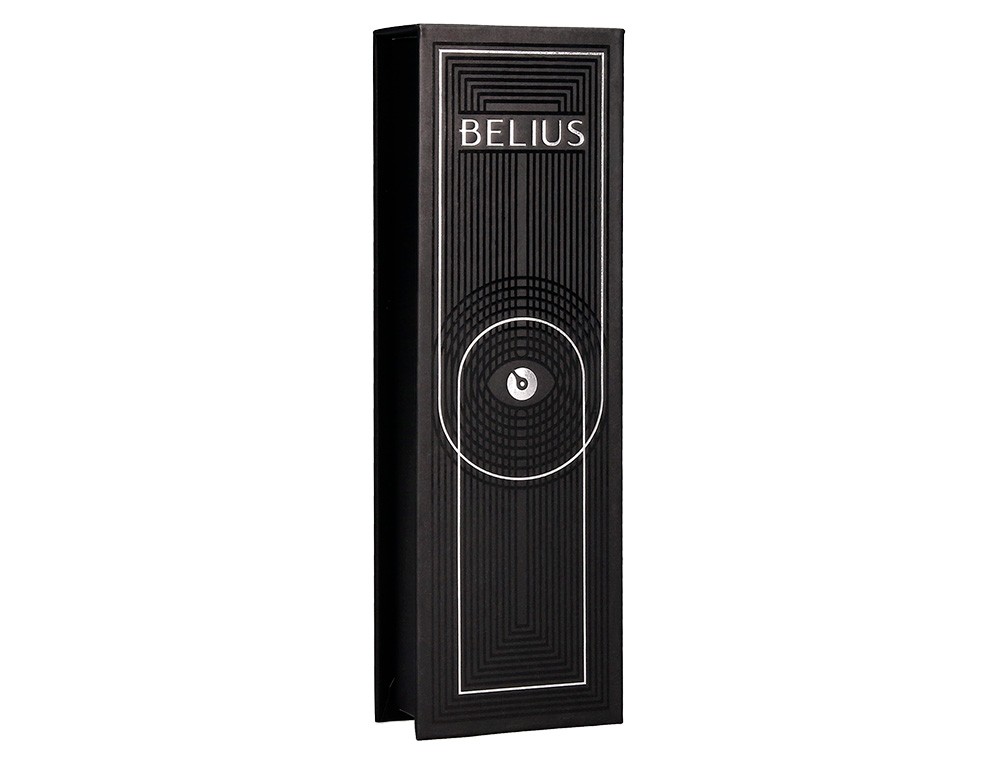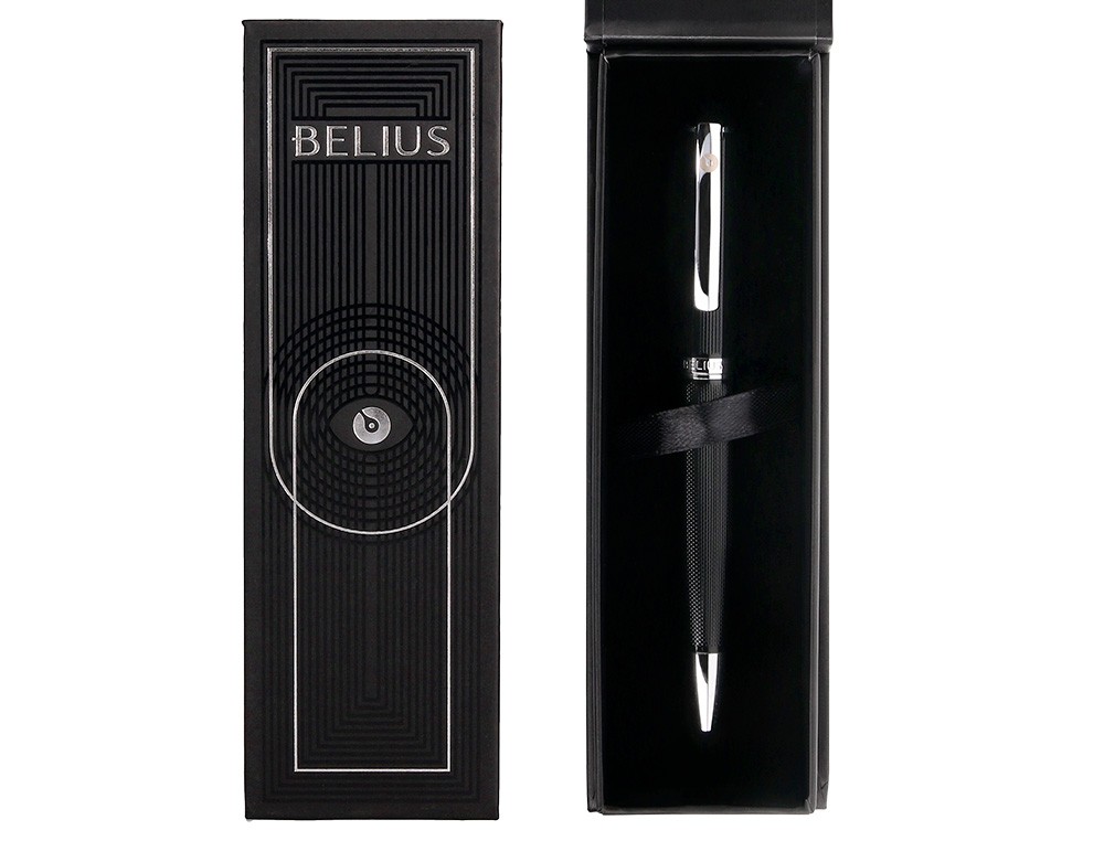 Roller belius turbo aluminio textura punteada color negro y plateado tinta azul caja de diseño