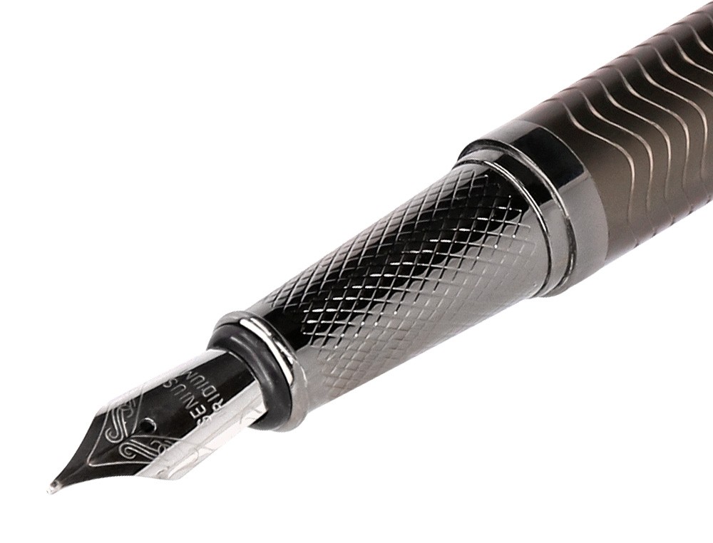 La pluma de la colección Neptuno presenta una cautivadora textura ondeada, con un elegante tono caqui, al igual que la caja en la que viene contenido. Cada pieza de esta colección ha sido meticulosamente diseñada para capturar la majestuosidad de las profundidades marinas y la fuerza del océano. La colección Neptuno evoca la fuerza y la elegancia que caracterizan al rey del mar. Esta colección es ideal para añadir un toque de sofisticación y personalidad a tu escritorio. Tinta color azul. Grosor tamaño M.