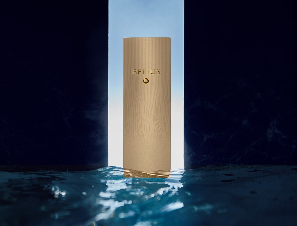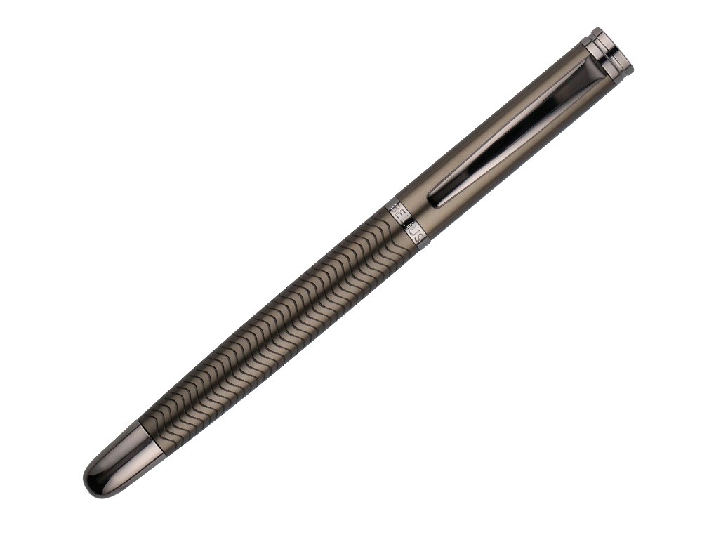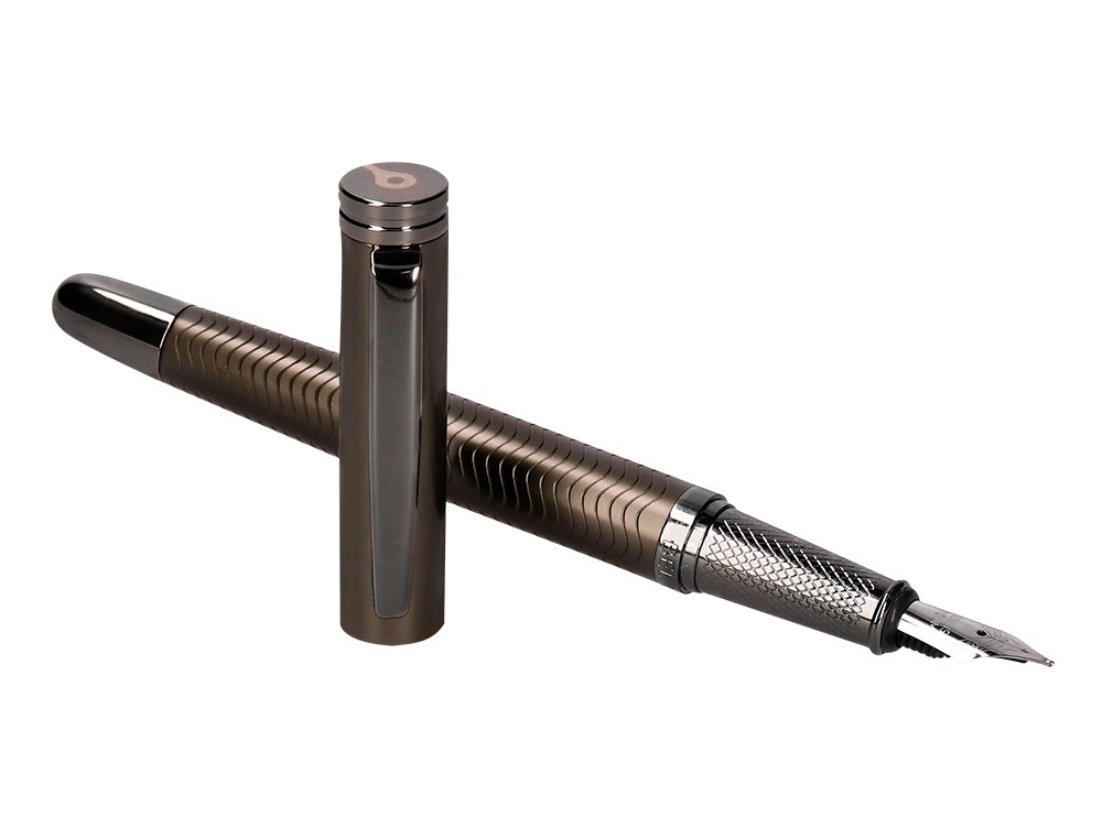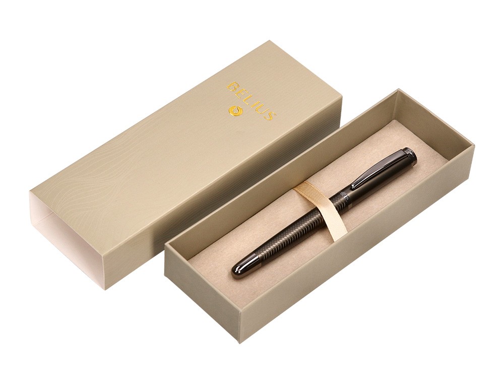Pluma belius neptuno aluminio textura wavy color caqui tinta azul caja de diseño