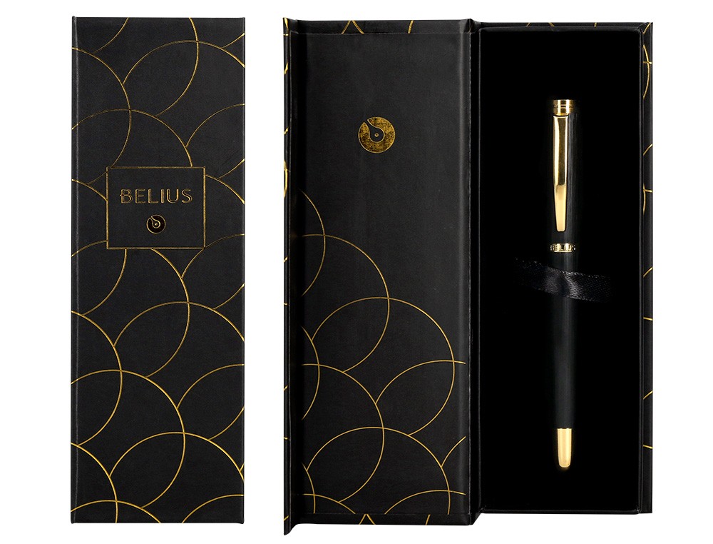 Boligrafo belius passion dor aluminio textura cepillada color negro y dorado tinta azul caja de diseño