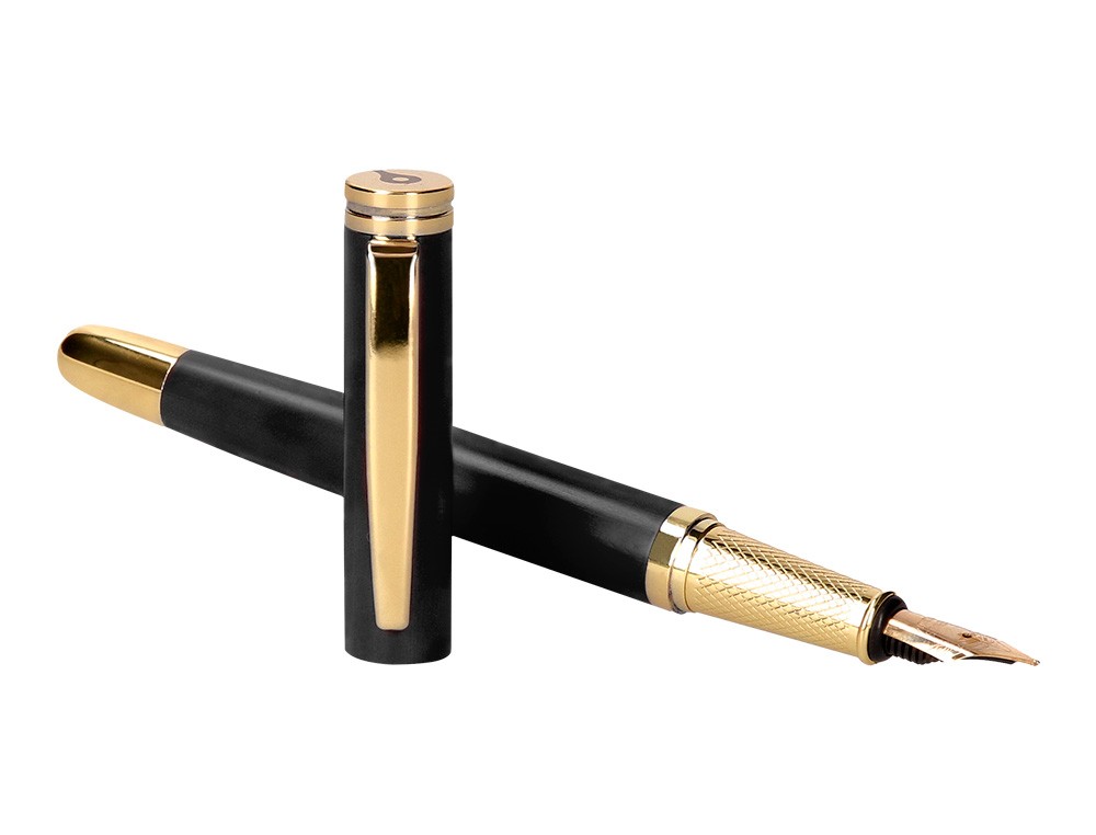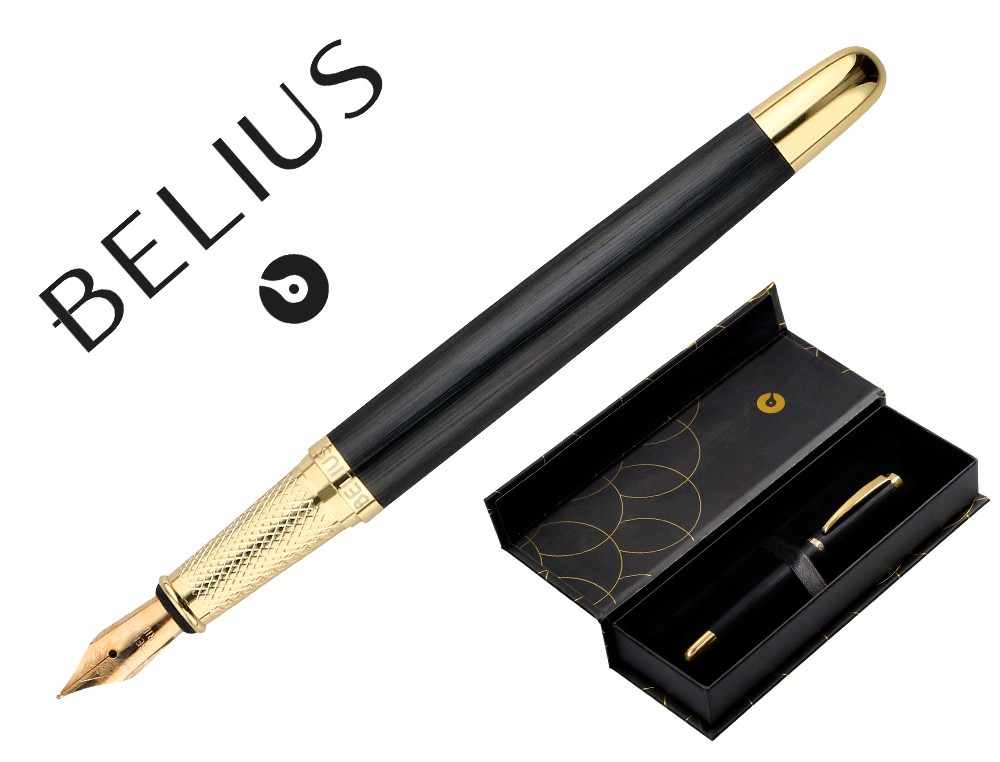Pluma belius passion dor aluminio textura cepillada color negro y dorado tinta azul caja de diseño