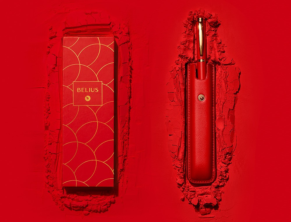 Boligrafo belius passion dor aluminio textura cepillada color rojo y dorado tinta azul caja de diseño