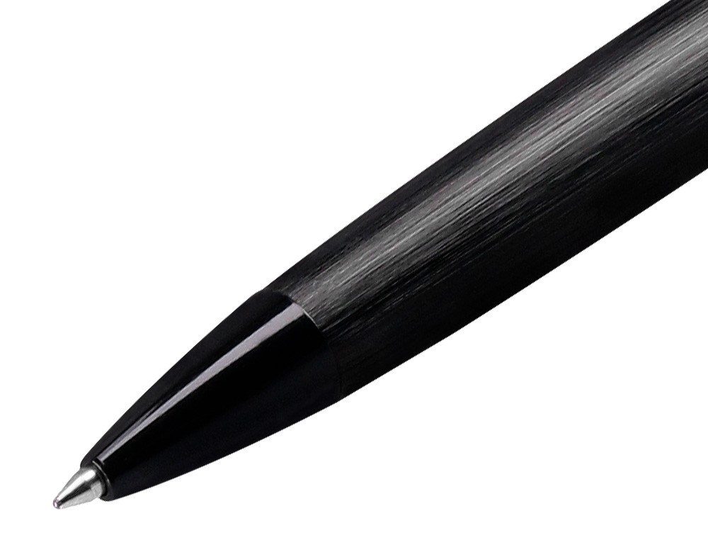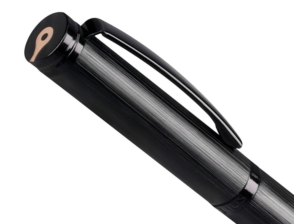 Un bolígrafo de diseño con un imponente acabado en negro sólido y una textura de aluminio cepillado, presentado en una elegante caja de regalo. Su escritura es cómoda y fluida, brindando una experiencia gratificante. Este roller ofrece un tacto ultra suave y agradable al escribir, gracias a su textura cepillada. La colección Origen 1995 es una verdadera expresión de sofisticación, elegancia y distinción, reflejando el compromiso y la dedicación que la marca ha demostrado a lo largo de sus más de 25 años de historia. Tinta color azul. Grosor tamaño 0,8 mm.