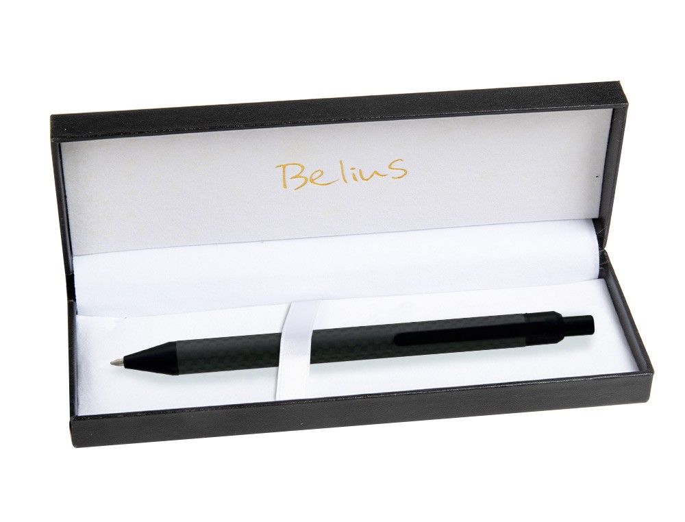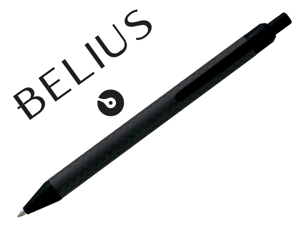 Boligrafo belius potsdam negro cuerpo fibra carbon tinta gel azul en estuche