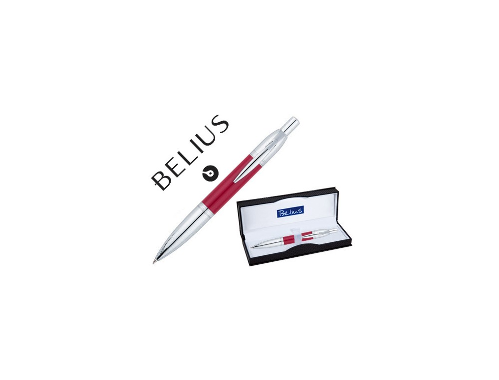 Boligrafo belius perpignan lacado rojo con adornos cromados en estuche