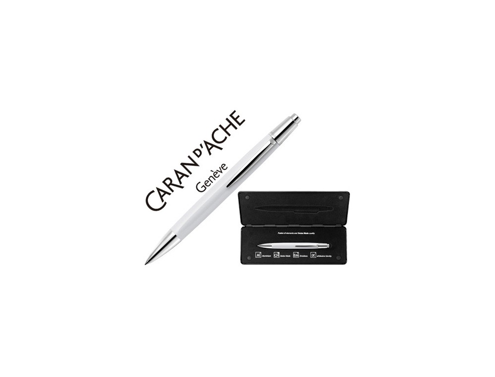 Boligrafo caran d'ache alchemix cuerpo laca blanca adornos cromados brillante con estuche punta media