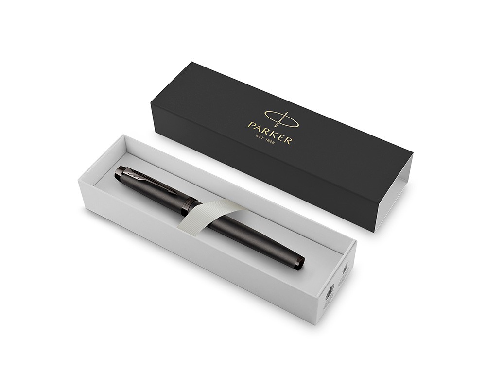 Roller IM Monochrome Parker Bronce. Diseñado pensando en el profesional moderno, el bolígrafo roller de Parker IM, funcional, consolidado y refinado, destacará sin duda en cualquier lugar de trabajo. Los infalibles bolígrafos roller Parker IM monocromáticos tienen un cuerpo completamente metálico que les da un aspecto lujoso en sus manos. Al mismo tiempo, el diseño monocromático, desde los detalles hasta la punta en gris acerado oscuro, refleja una elegancia inigualable. Con más de un siglo de experiencia y artesanía propia, este roller de Parker cuenta con piezas metalizadas exclusivas adornadas con un revestimiento de PVD que ofrece una resistencia superior al desgaste y la corrosión, así como un look distintivo. Este moderno bobolígrafo roller utiliza recambios del bolígrafo roller de tinta Quink pa ra una experiencia de escritura fluida y suave. Con su elegante estuche deregalo Parker, el bolígrafo roller monocromático Parker IM es un regalo m