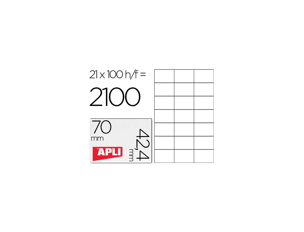 Etiqueta adhesiva apli 1276 tamaño 70x42,4 mm para fotocopiadora laser ink-jet caja con 100 hojas din a4