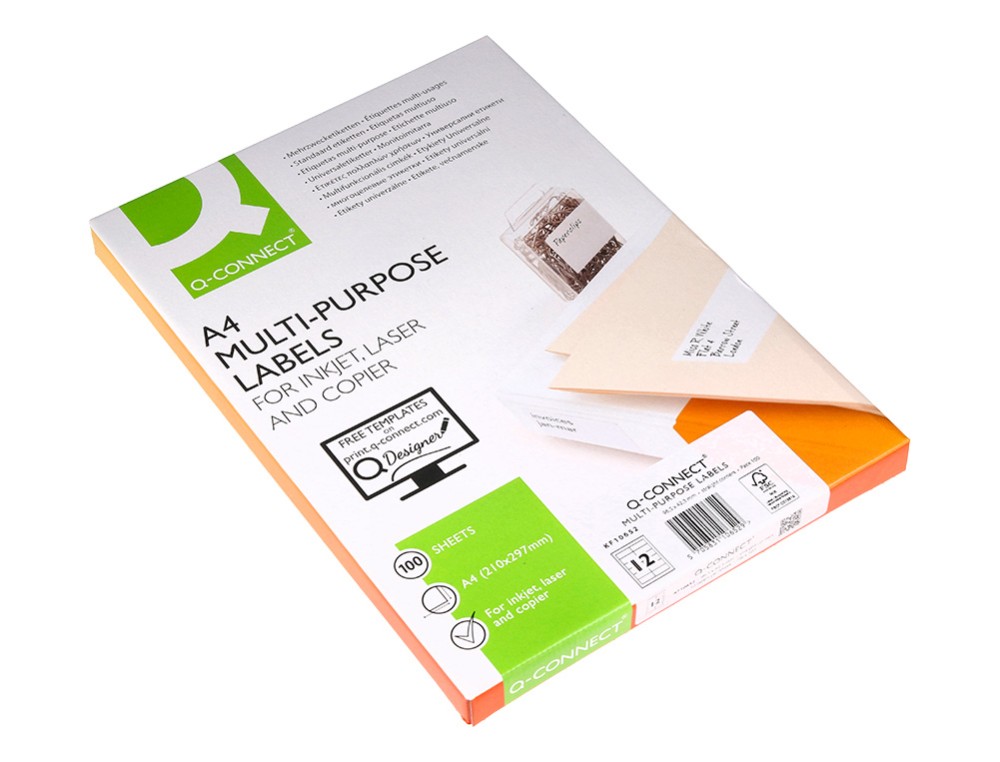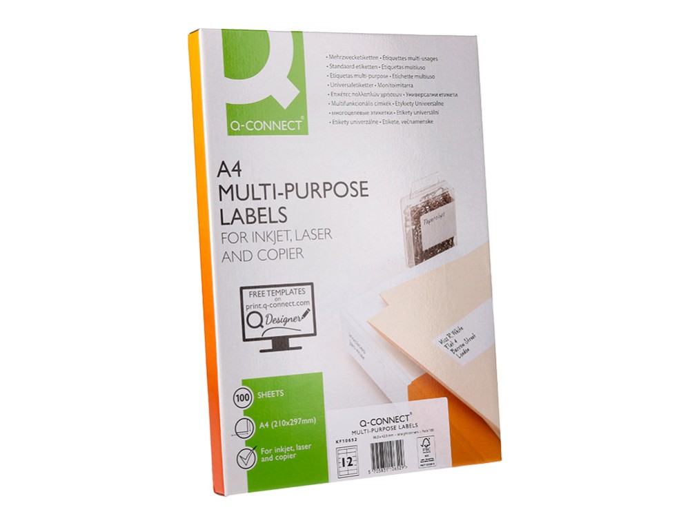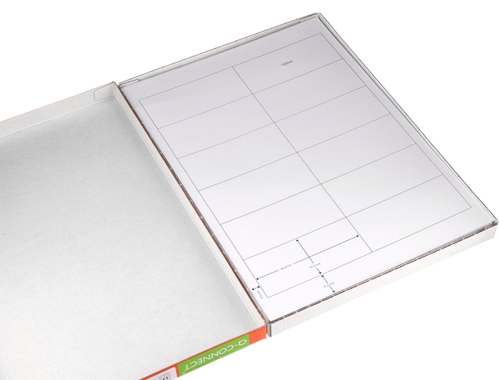 Etiqueta adhesiva q-connect kf10652 tamaño 96,5x42,3 mm fotocopiadora laser ink-jet caja con 100 hojas din a4