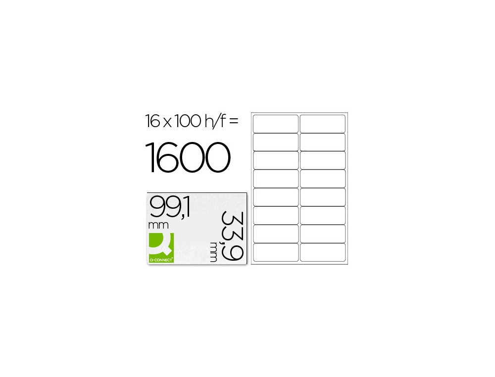 Etiqueta adhesiva q-connect kf01584 tamaño 99,1x33,9 mm fotocopiadora laser ink-jet caja con 100 hojas din a4