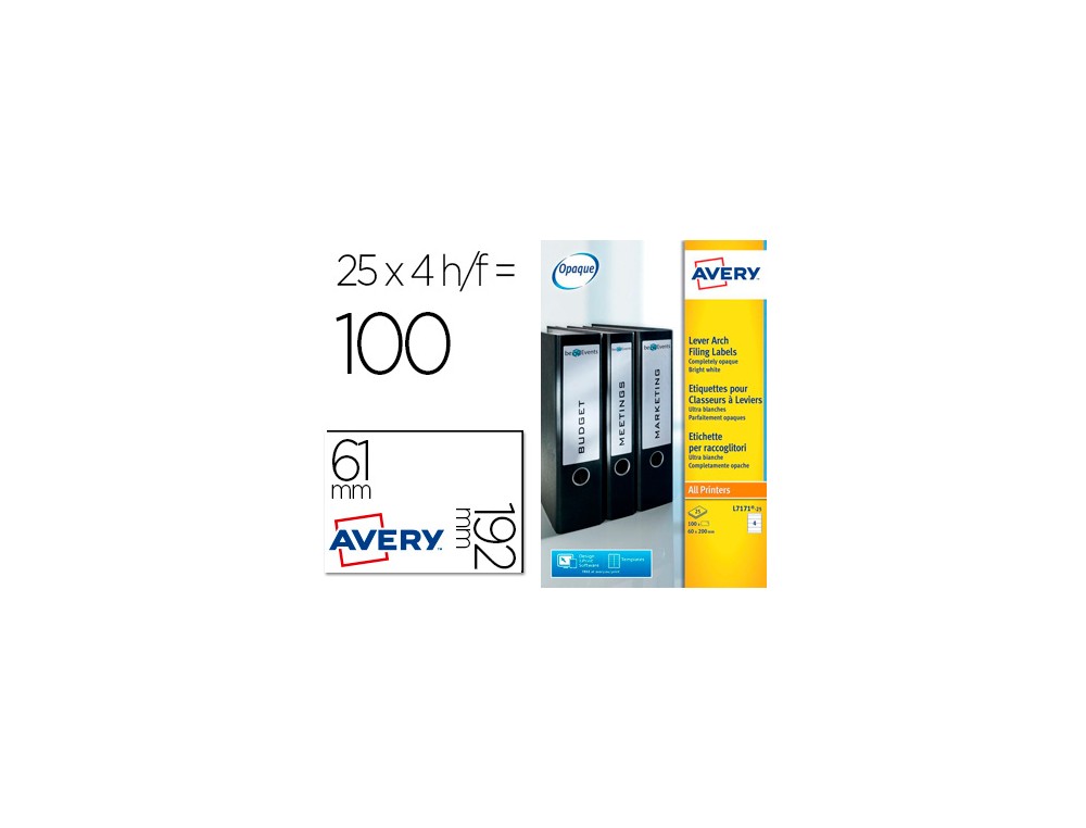 Etiqueta adhesiva avery permanente blanca 61x192 mm para lomo archivador laser caja de 100 unidades
