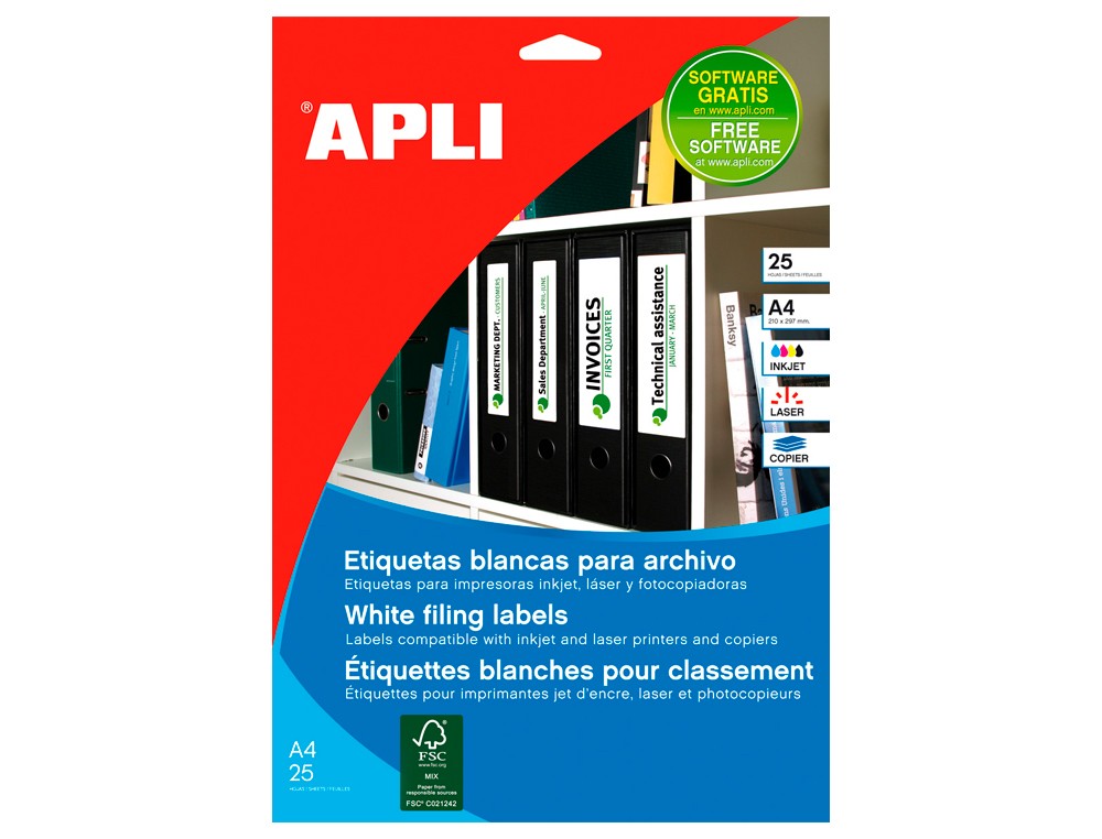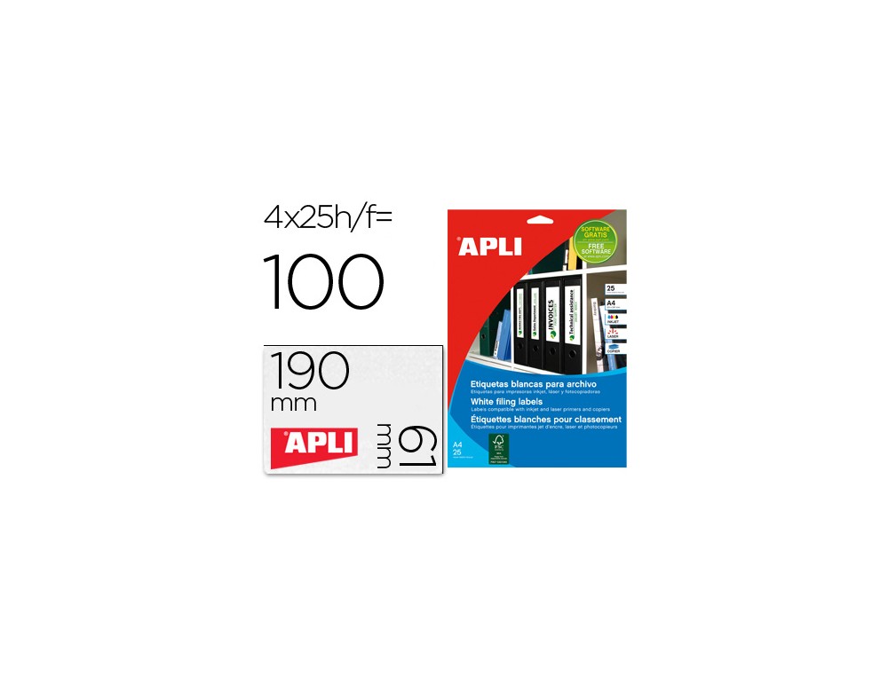 Etiqueta adhesiva apli 1233 tamaño 190x61 mm para fotocopiadora laser ink-jet caja 25 hojas con 100