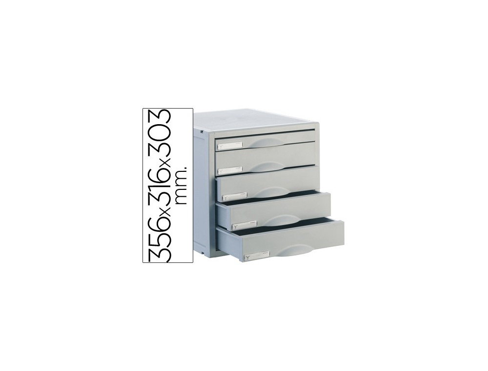 Fichero cajones de sobremesa archisystem 356x316x303 mm 5 cajones color gris 4 de 52mm y 1 de 22mm