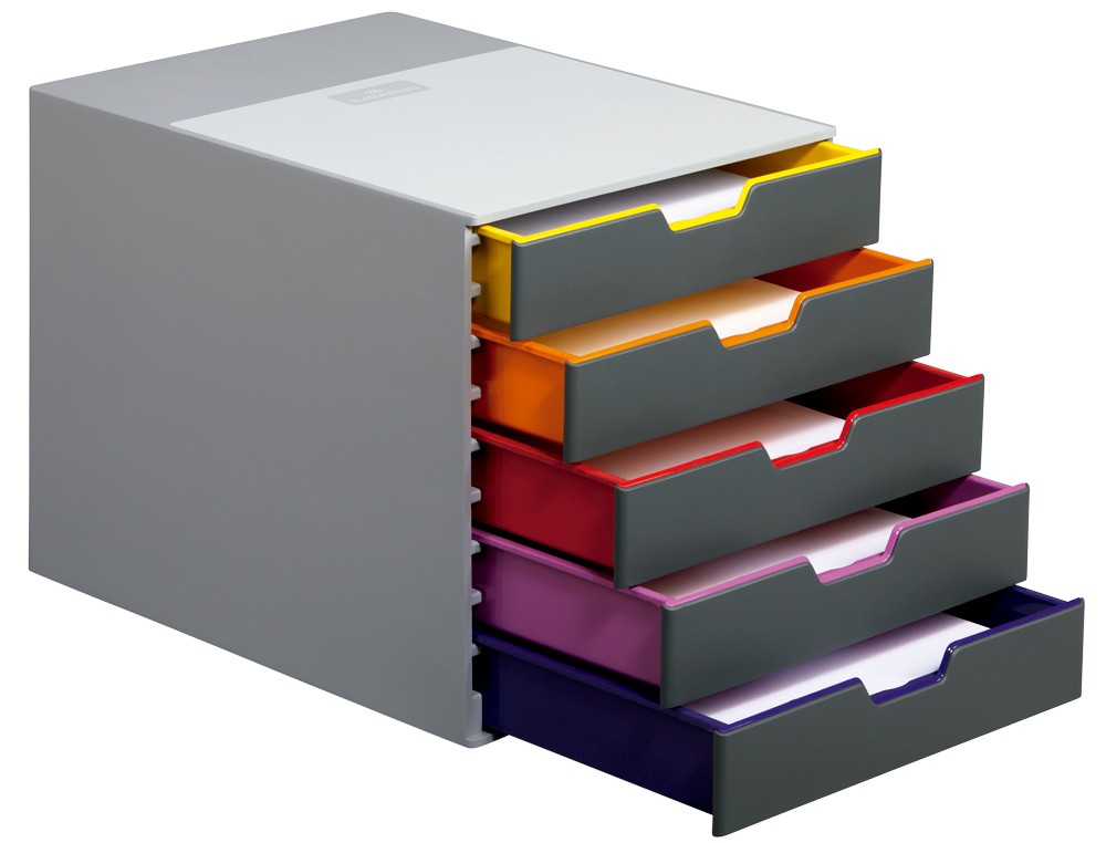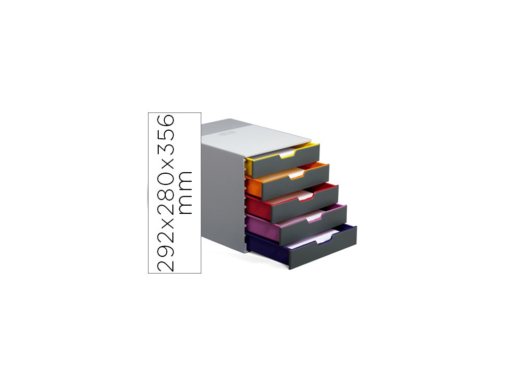 Fichero cajones de sobremesa durable varicolor apilables 5 cajones plastico 292x280x356 mm