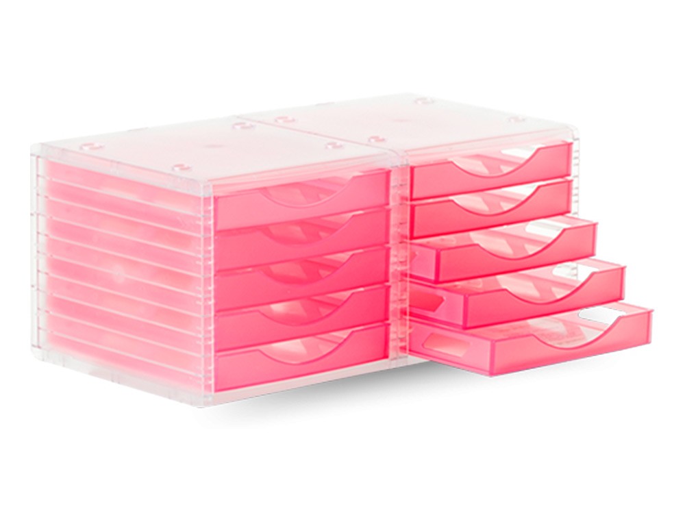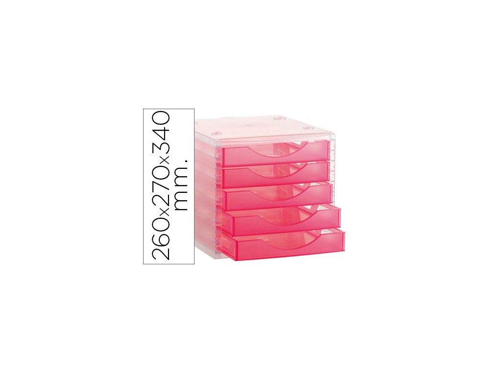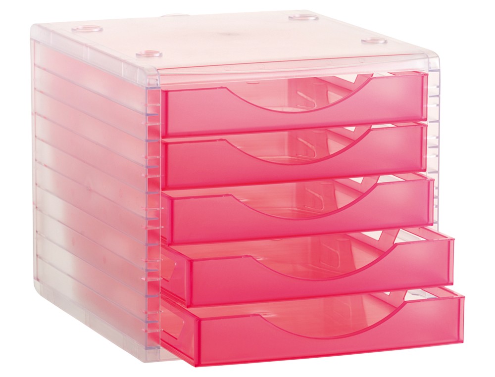 Fichero cajones de sobremesa archivo 2000 260x270x340 mm apilable 5 cajones rosa translucido