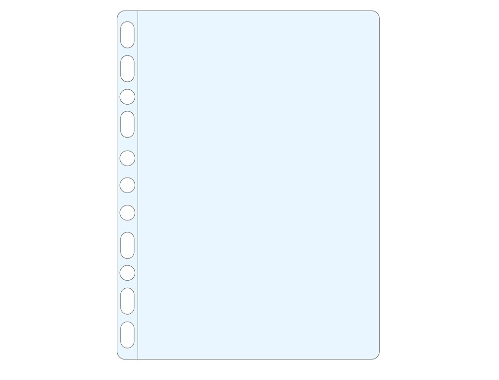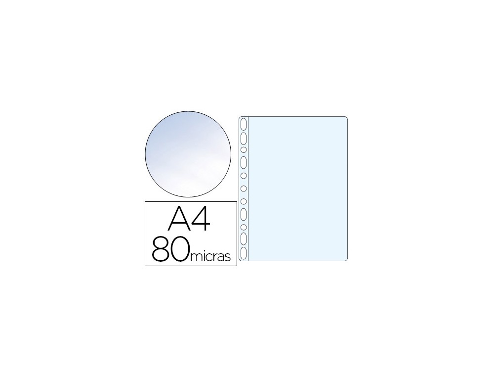 Funda portadocumentos multitaladro para la protección de documentos. Fabricada en polipropileno cristal liso. Copysafe: evita que la tinta de los documentos se quede adherida a la funda. Taladros con refuerzo. Grosor: 80 micras. La caja de 100 unidades.