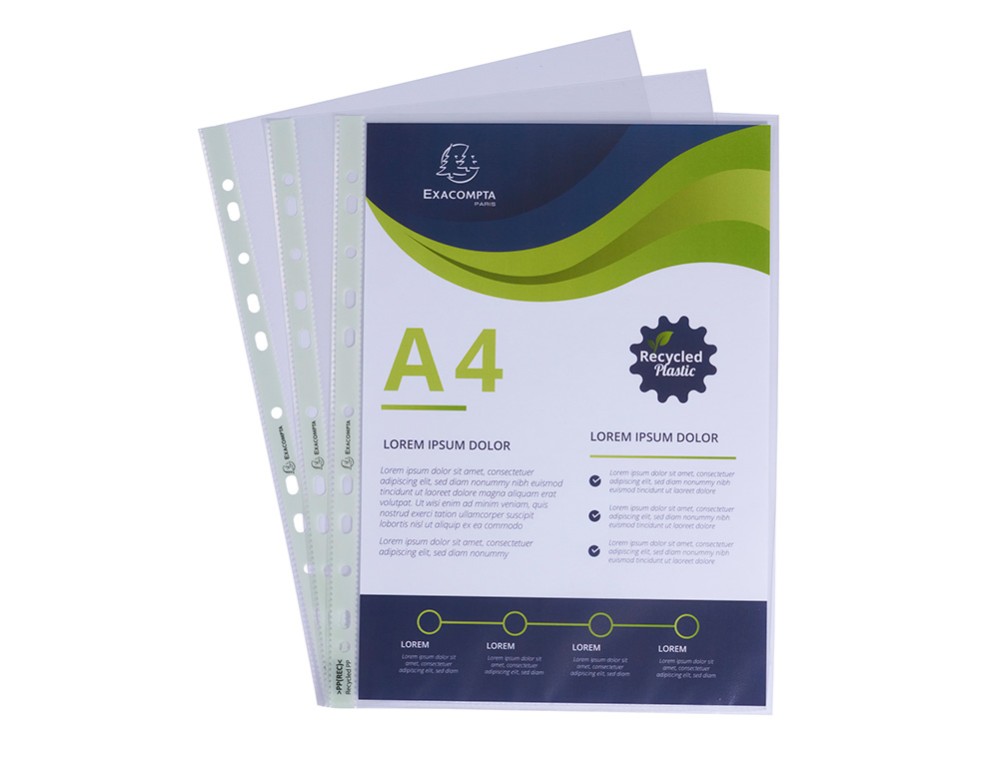 Funda multitaladro exacompta reciclada polipropileno 60 mc din a4 piel de naranja caja de 100 unidades