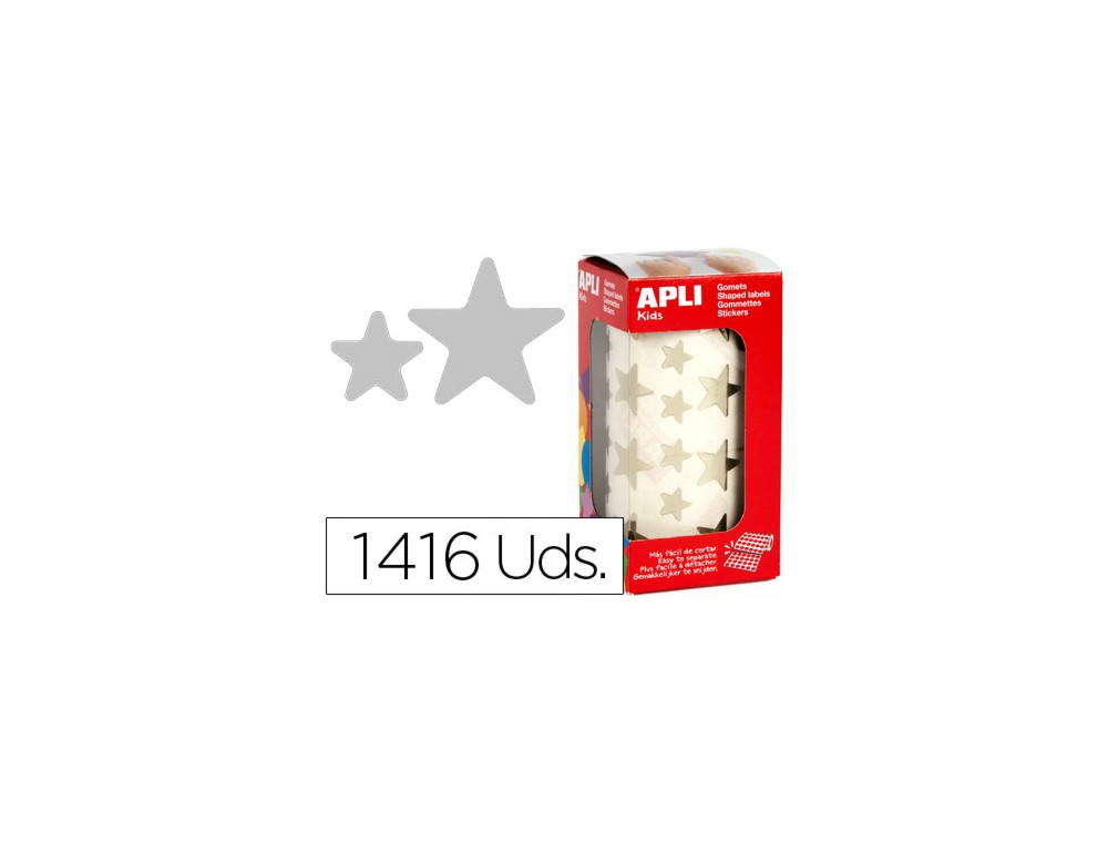 Gomets autoadhesivos estrellas grandes plata en rollo con 1416 unidades