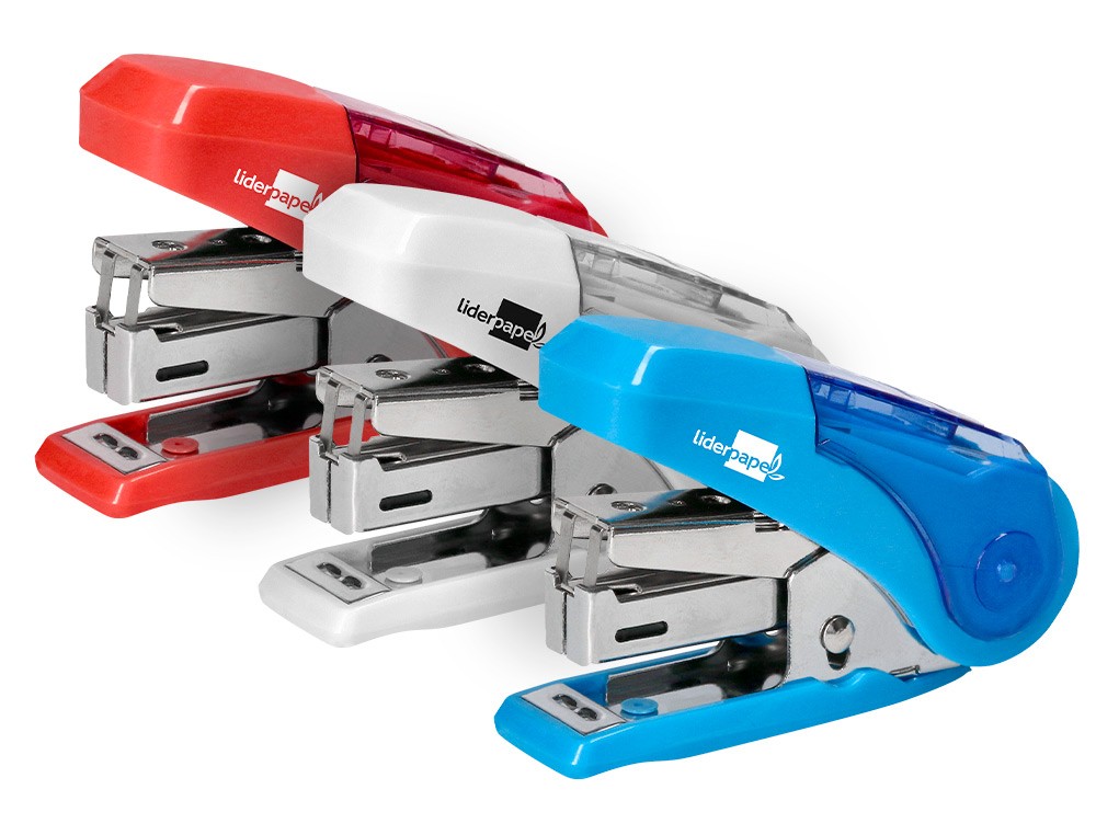 Grapadora liderpapel micro con regalo de funda y caja de 1000 grapas nº10 capacidad 12 hojas colores surtidos