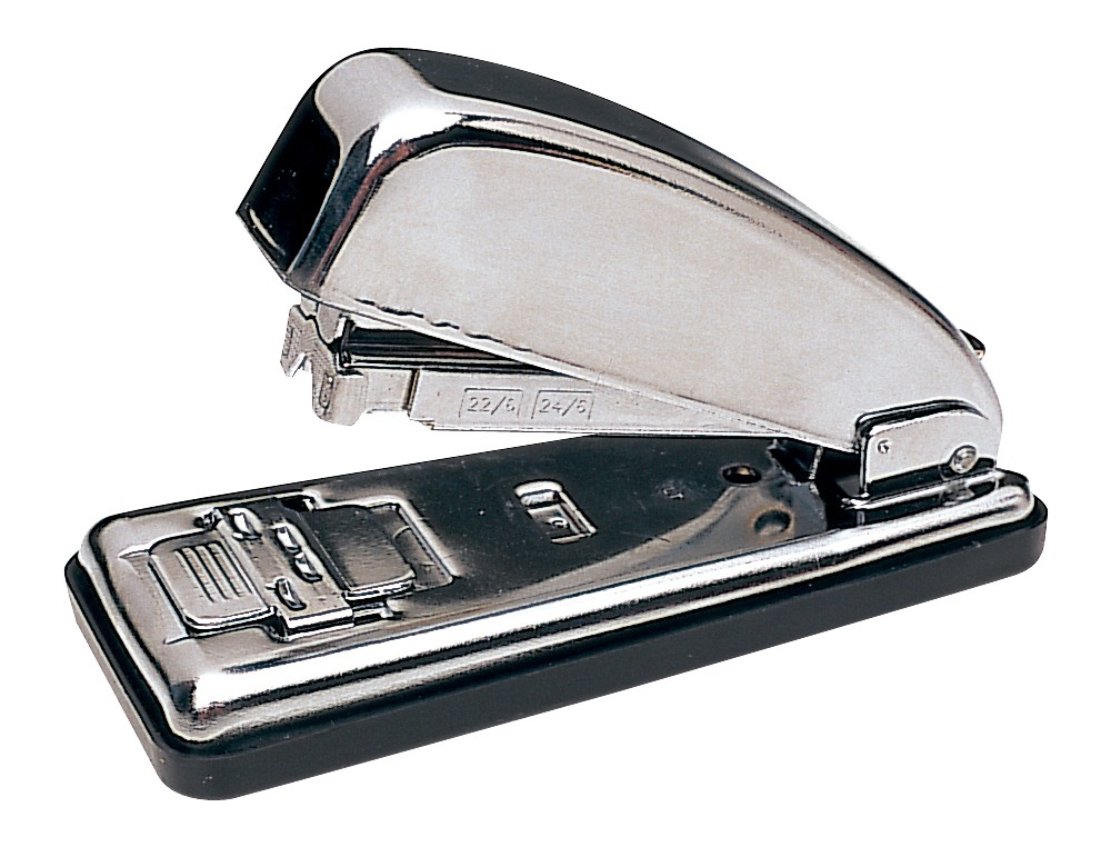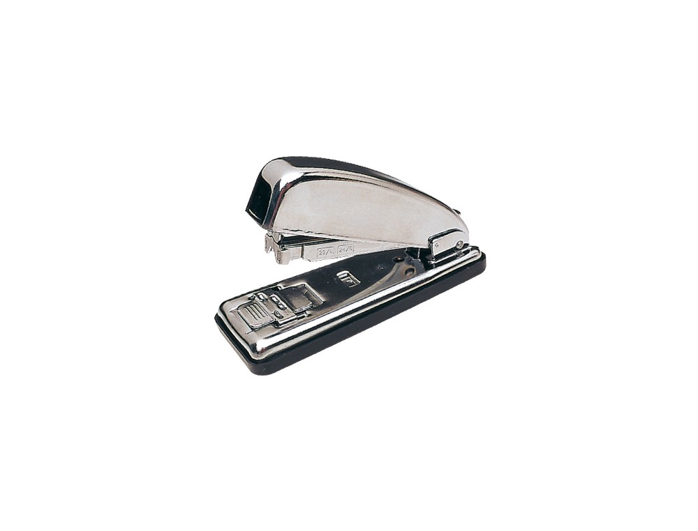 Metálica cromada. Con capacidad de carga de 70 grapas nº 22/6 y 24/6. Longitud de grapado a 72 mm del borde de la hoja. Con base plástica antideslizante. Con cargador doble guía antiatascos. Carga frontal. Incorpora el grapado PGT (Paper Grip Tecnology) para un grapado siempre perfecto. Longitud de la base: 125 mm. Medidas: 55 x 76 x 125 mm.