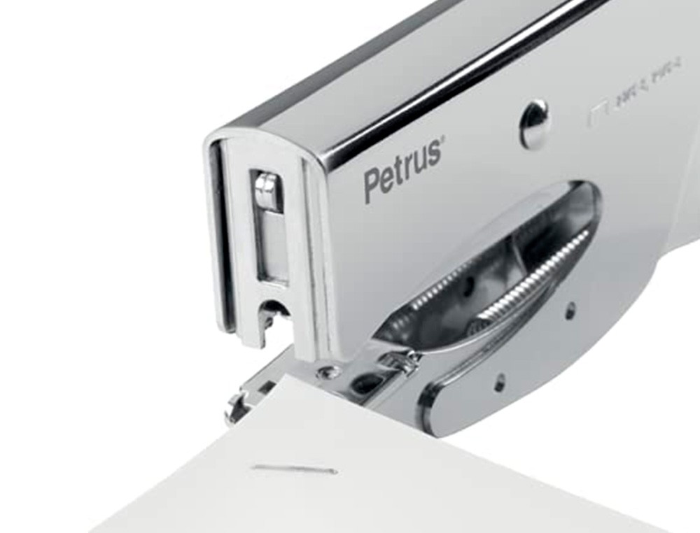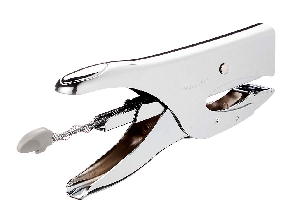 Grapadora petrus de tenaza 222 metalica cromada capacidad de grapado 40 hojas usa grapas 22/6-8 y 24/6-8