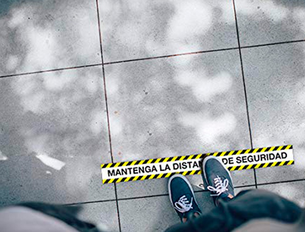TIRA DE SEÑALIZACIÓN ADHESIVA CON MENSAJE \"MANTENGA LA DISTANCIA DE SEGURIDAD\". TIRAS DE 100 X 10 CM CON IMPRESIÓN, ACABADO MATE Y ADHESIVO SOLVENTE DE ALTA RESISTENCIA QUE NO DEJA RESIDUOS. EL FILM DE PVC PERMITE DAR GRAN CONSISTENCIA A LA CINTA, APORTA MUCHA RIGIDEZ Y LA HACE MUY RESISTENTE, OFRECE 100 MICRAS PARA GARANTIZAR UN PRODUCTO DE ALTA DURABILIDAD Y UNA CAPA DE BARNIZ MATE PROTECTORA DE 80 MICRAS. EL ADHESIVO SOLVENTE ES SIN DUDA EL ADHESIVO DE MAYOR CALIDAD, UN ADHESIVO QUE PROVIENE DEL CAUCHO NATURAL, LA RESINA DE LOS ÁRBOLES. OFRECE UN GRAN PODER DE ADHESIÓN EN CUALQUIER TIPO DE SUELOS O SUPERFICIES. IDEAL PARA LA SEÑALIZACIÓN DE COMERCIOS Y PUNTOS DE ATENCIÓN AL CLIENTE. SOPORTA TEMPERATURAS DE 0ªC A 60ºC