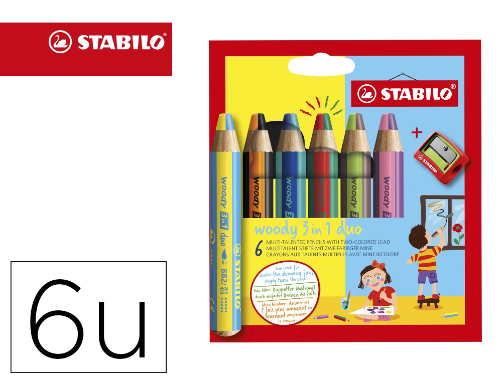 Lapices de colores stabilo woody 3 en 1 duo estuche de 6 colores surtidos