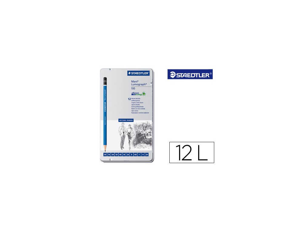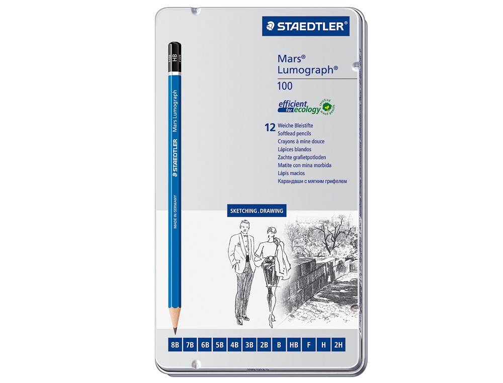 Lapices de grafito staedtler mars lumograph 100 caja metalica de 12 lapices 8b- 7b-6b-5b-4b-3b-2b-b-hb-f-h-2h