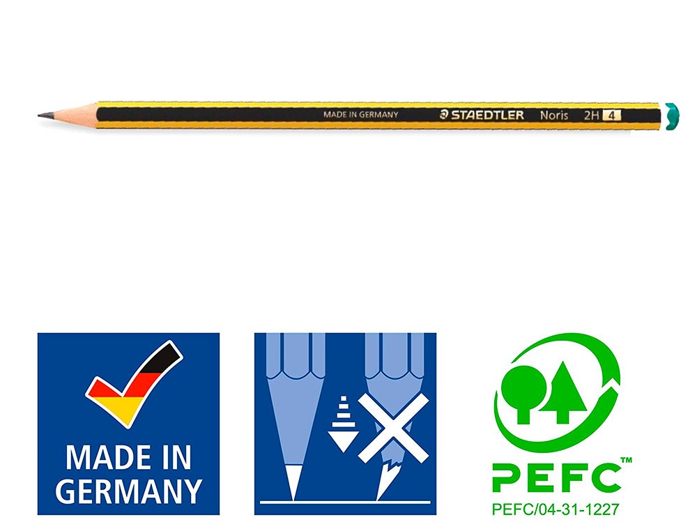 El encolado especial de la mina y la madera en toda la longitud del lápiz, evitan que las minas se rompan al afilarlas. Lápiz ecológico, con madera procedente de bosques de gestión sostenible.