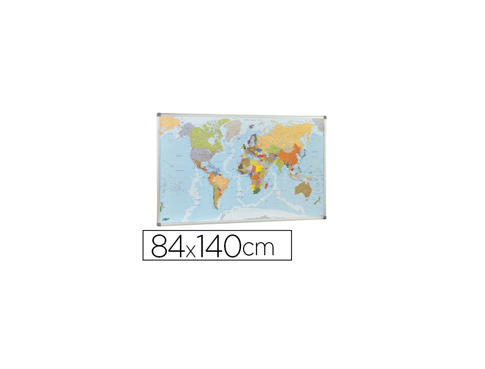 Mapa mural faibo planisfero politico magnetico marco de aluminio con cantoneras de proteccion 84x140 cm