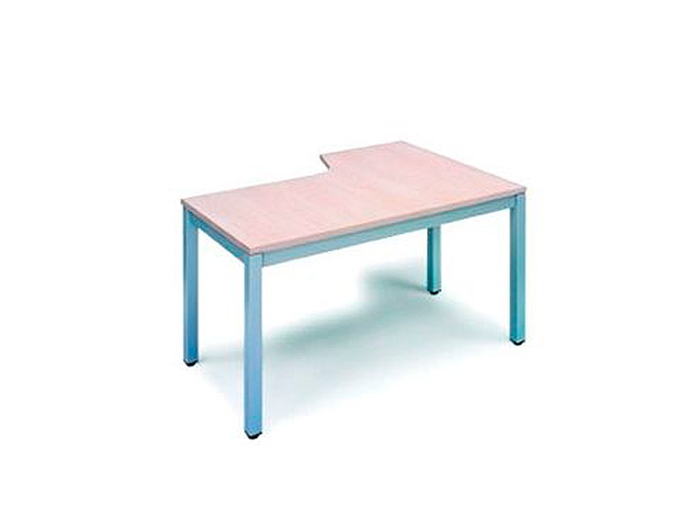 SUPERFICIE DE MESA: melamínico sobre aglomerado de 25 mm de grosor con cantos de PVC de 2 mm. Acabados en haya, gris y blanco. Superficies de cantos rectos. ESTRUCTURA: con sistema de regulación independiente (50 mm) fabricada en tubo de acero de 60 x 60 x 1,5 mm. Sistema de anclaje en fundición de aluminio. Travesaños tubulares de acero con nuevas medidas reducidas de 40 x 30 mm para una máxima comodidad.