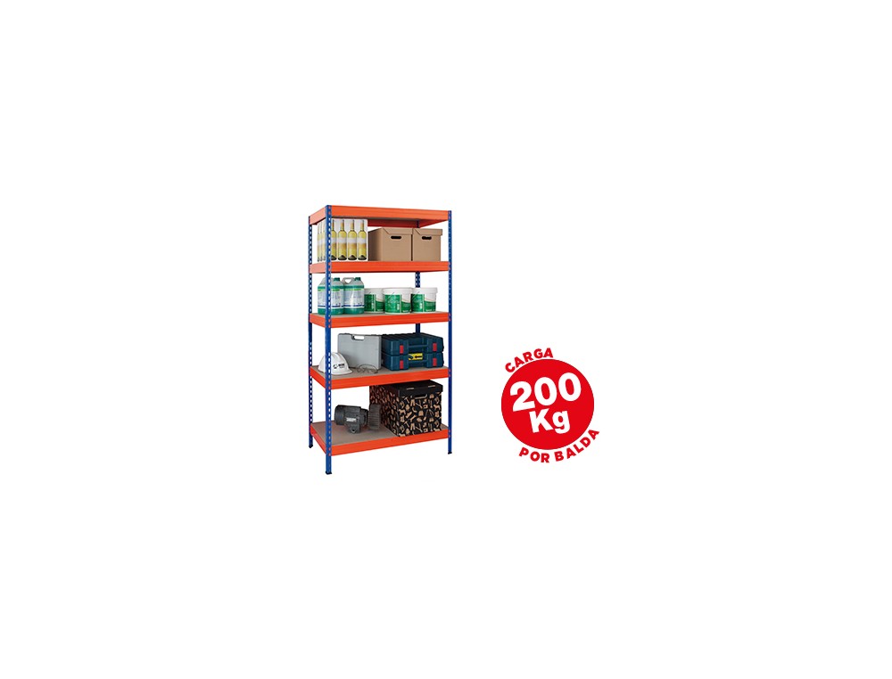 Estanteria metalica ar storage 180x90x45 cm 5 estantes 200kg por estante bandejas de maderasin tornillos azul naranja