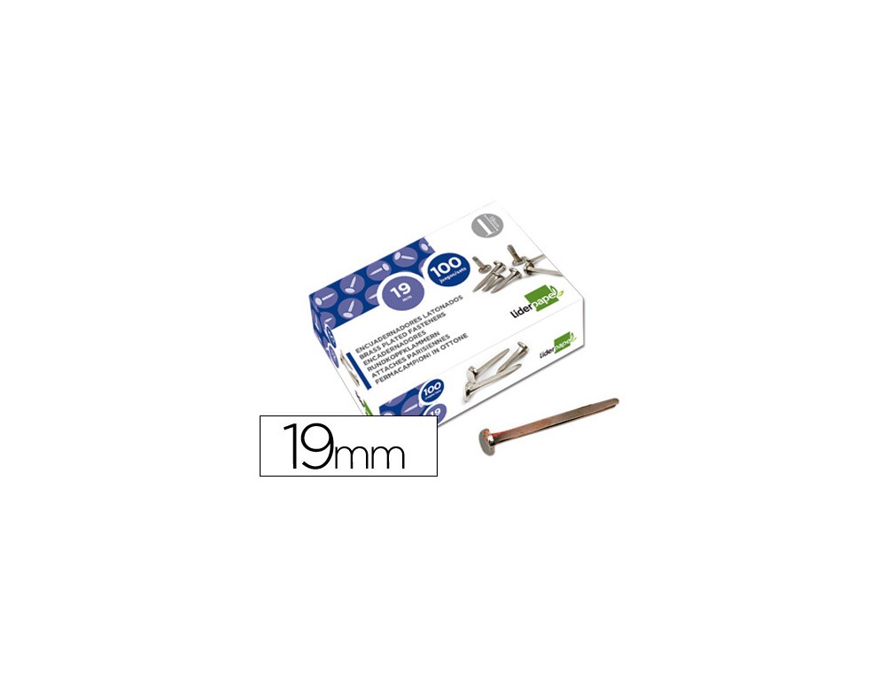 Encuadernadores liderpapel niquelados n.3 19 mm caja de 100 unidades