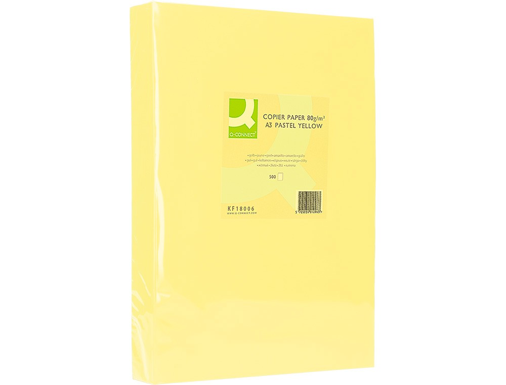 Papel color q-connect din a3 80gr amarillo paquete de 500 hojas