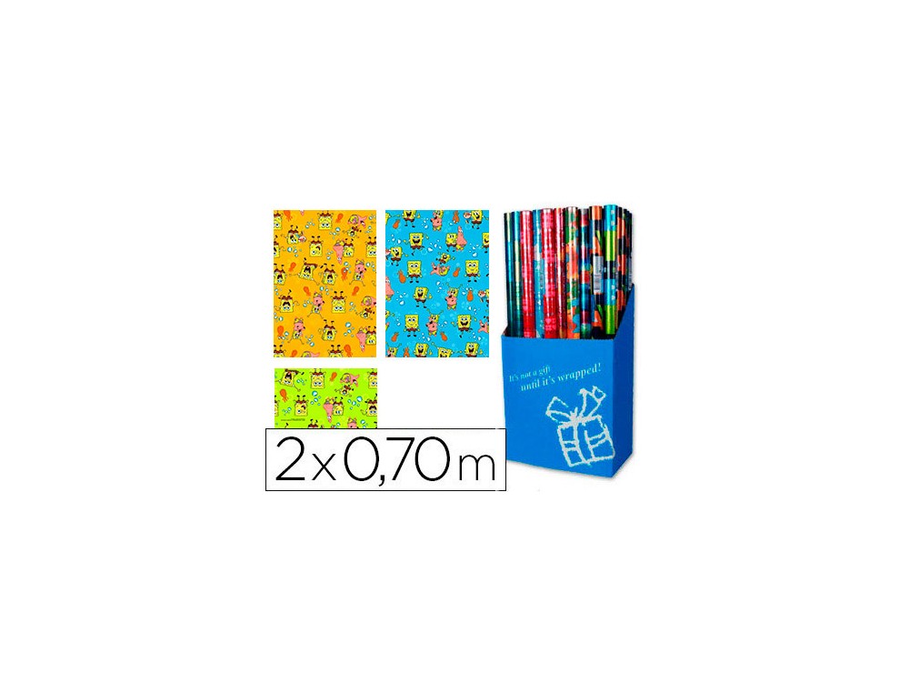 Papel de regalo infantil bob esponja rollo ancho 70 cm longitud 2 m modelos surtidos gramaje 60 gr