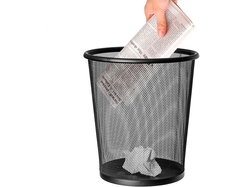 Papelera de rejilla metálica con forma circular. Capacidad: 19 litros. Medidas: Ø 24 x 34,5 x Ø 29,5 cm.