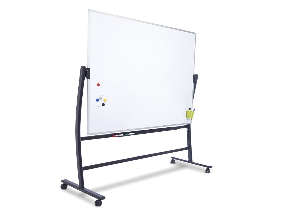 Pizarra blanca rocada acero lacado magnetico marco aluminio doble cara volteable curve 120x180 cm