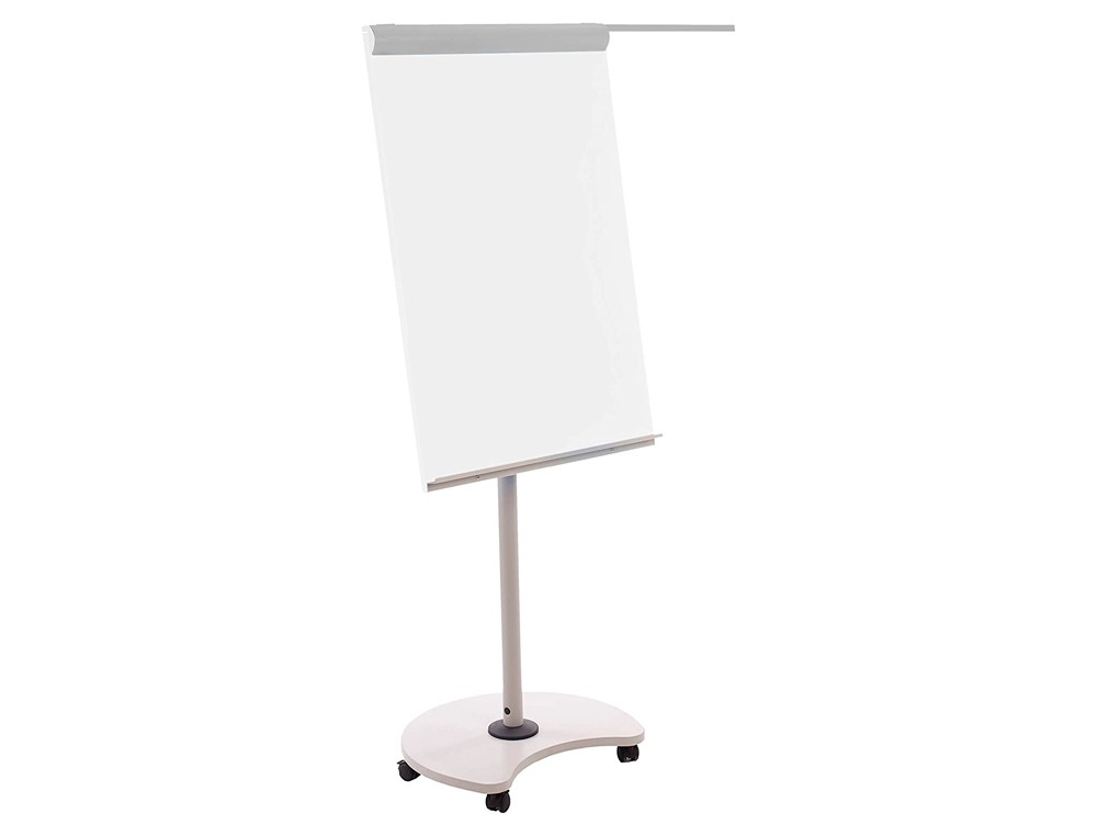 Pizarra de conferencias con base de ruedas. Superficie de escritura metálica y magnética ideal para escribir con rotuladores de pizarra blanca. Admite bloc de papel universal. Embellecedor de diseño en la parte superior para esconder los pomos de sujeción del bloc. Nuevo sistema de regulación de altura sin pomos. Incluye 2 brazos laterales extensibles para mostrar dos hojas de bloc simultáneamente en las presentaciones y bandeja para rotuladores. Hasta 190 cm de altura. Fácil montaje. Medidas del tablero: 68 x 104 cm.
