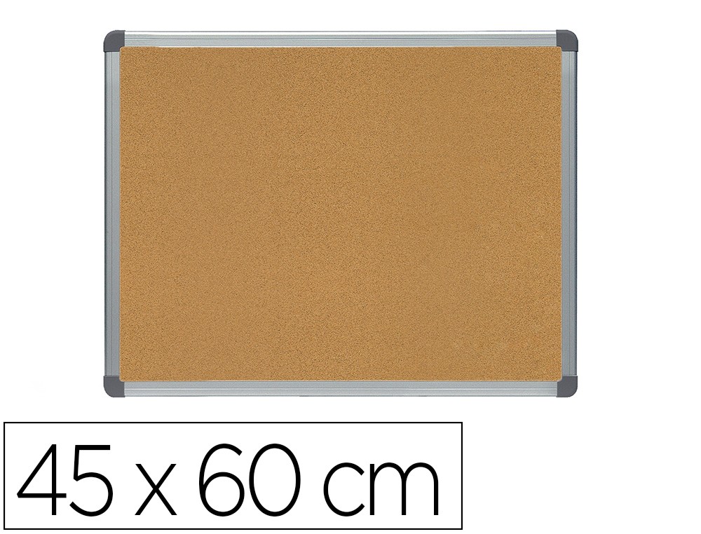Pizarra mural de corcho natural, resistente y autorregenerable de alta calidad. Marco de aluminio anodizado. Para usar con chinchetas. Incluye tornillos fijadores a la pared.
