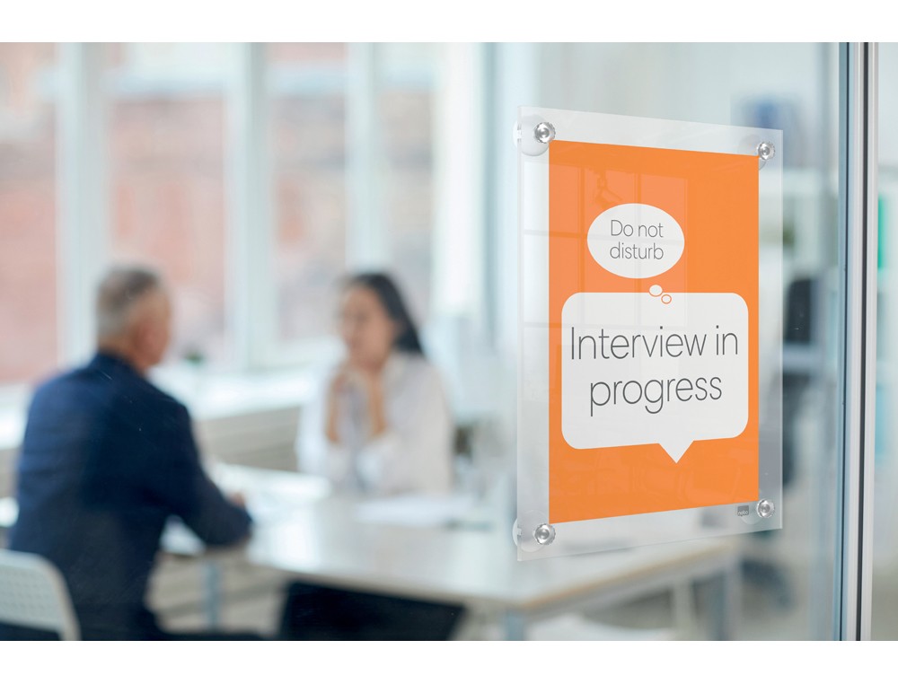 Este porta póster acrílico montable y fácil de mover, con un moderno diseño sin marco, proporciona una sensación elegante y contemporánea. Gracias asu montaje con ventosas, el porta póster se adhiere a cualquier superfici e no porosa en formato vertical u horizontal y ofrece un cambio de contenido rápido y sencillo. La superficie transparente se puede limpiar fácilmente, lo que convierte a este soporte en la solución ideal para la exposición de carteles, documentos o información temporal y permanente. Tamaño de la superficie de exposición A3.
