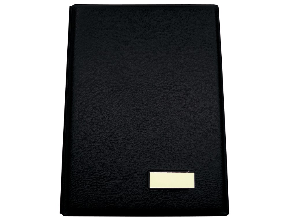 Portafirmas extra con materiales acabados en símil piel y portada acolchada. Con lomo tipo fuelle. Con compartimentos de doble cartulina reforzada y escalonada. Con visor en portada. Medidas: 250 x 335 mm.