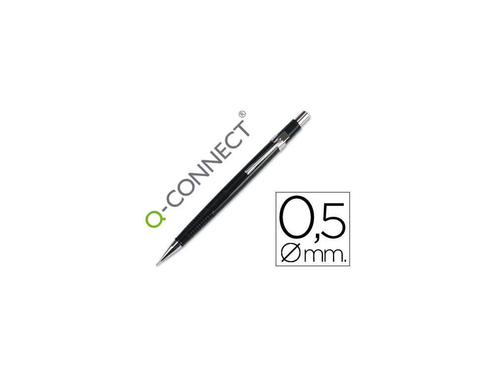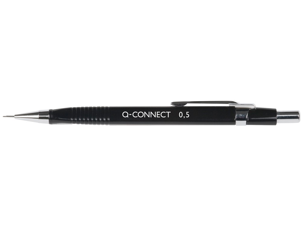 Portaminas q-connect 0,5 mm con tres minas cuerpo negro clip metalico