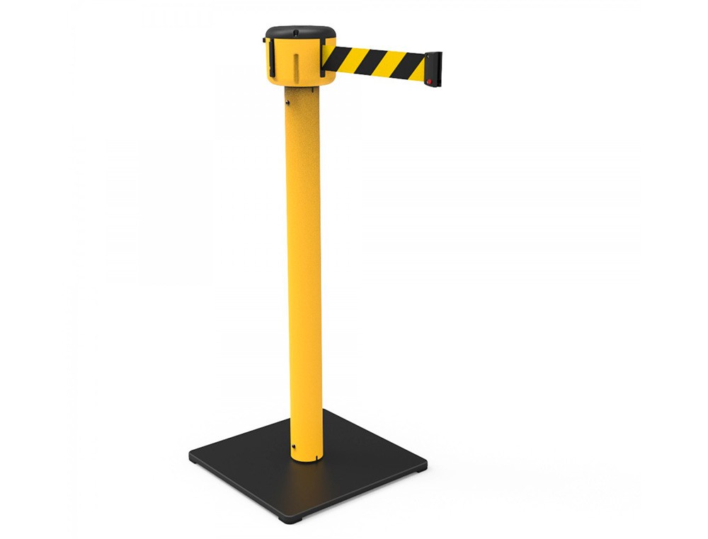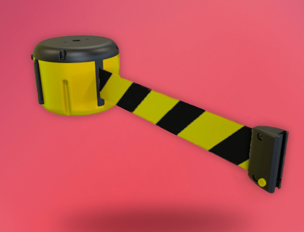 Cinta portátil retráctil Esta opción le ofrece una longitud de 9 metros para proteger sus espacios y hacerlos más seguros. Dispone de dos opciones de mecanismo, un sistema de recogida lento para evitar heridas a los usuarios, así como un sistema antirrobo. Su montaje es modular, que la hace compatible a todos nuestros productos.Está hecha de polipropileno, lo que la hace resistente a espacios exteriores y lugares con condiciones difíciles. Ofrece dos tipos de cinta así como distintas opciones de color tanto para la cinta y el cuerpo.