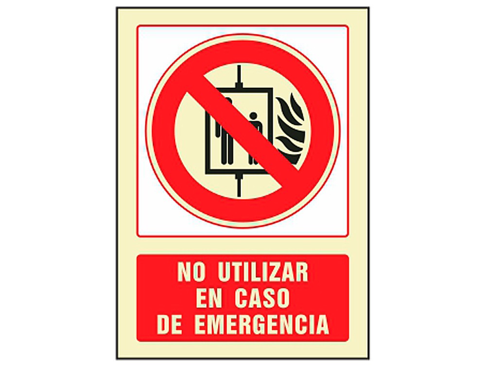 Pictograma syssa señal de no utilizar en caso de incendio en pvc fotoluminiscente 210x297 mm