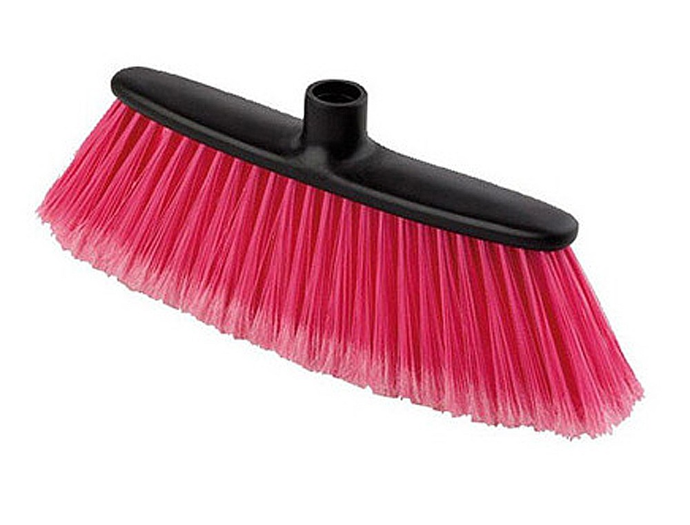 Escoba básica. Cerdas sintéticas en color rosa. No incluye palo. Medidas: 300 x 120 x 90 mm.